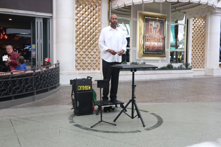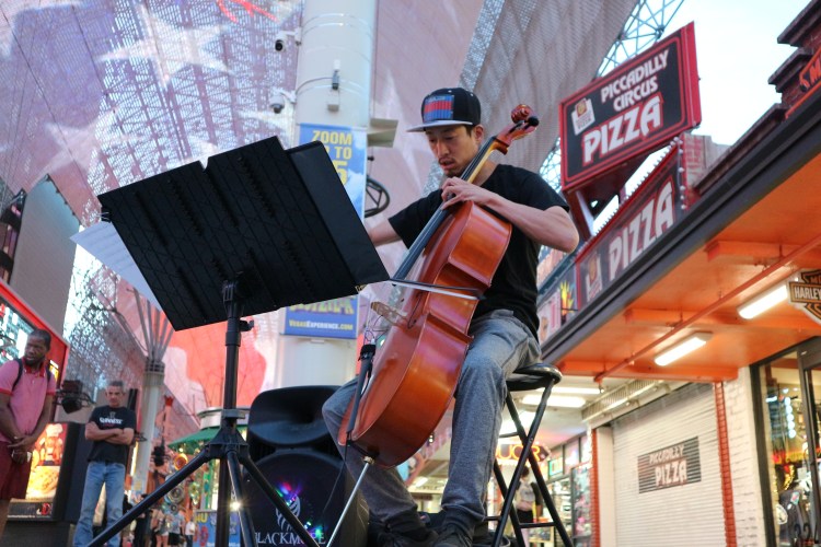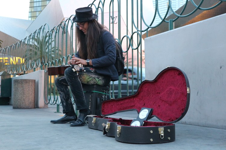 June, 2019Street artist Larime Taylor draws a caricature on the Las Vegas Strip (September 2022)William and Lapi busking in June 2021Alex Rivers plays violin on the Tropicana/Las Vegas Blvd BridgeM1RJ75 Las Vegas, Nevada, USA. 2nd Jan, 2016. A saxophone players busks for tips while in the garage at the MGM Grand Garden Arena in Las Vegas, Nevada. Credit: L.E. Baskow/ZUMA Wire/Alamy Live News